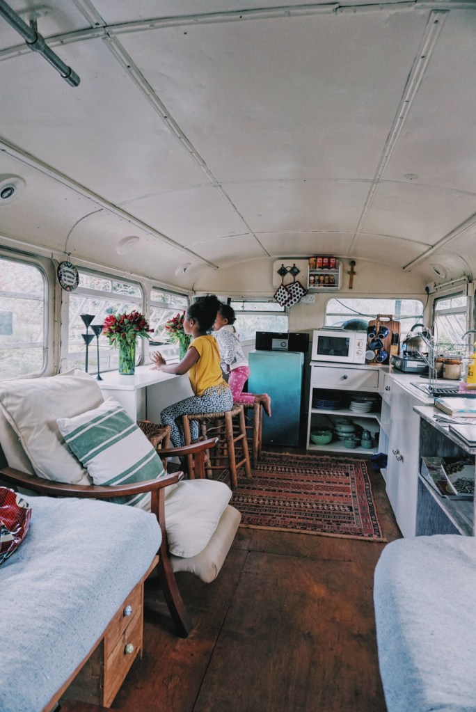 L’intérieur est étroit (enfin comme un bus quoi) mais à été aménagé avec tellement de soin, qu’on s’y sent très bien. Un salon, une petite cuisine, une salle de douche plutôt grande, et à l’étage 2 lits queen size. C’est cosy, chaleureux. Et décoré dans un style que j’affectionne et que j’appelle afro boho chic! Toutes les pièces ou presque de la déco sont d’ailleurs made in Kenya et dans le livre des invités, vous trouverez les différentes adresses où acheter ce qui vous plaît. Si seulement nous avions passé plus de temps, je pense que j’aurais tout ramené !