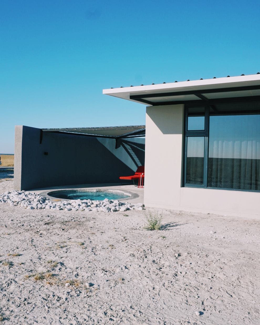 Notre premier lodge est un lieu absolument extraordinaire. King Nehale lodge, situé sur les terres de ce mythique héros Namibien, est situé à quelques minutes de l’entrée nord. Lorsque vous arrivez, vous croiserez le trône du Roi Nehale et apercevrez au loin le lodge . 40 chambres, individuelles avec leur piscine privative et offrant une vue sur les plaines à couper le souffle. Chaque chambre rend hommage à l’´héritage culturel local. La vache sacrée (oui comme au Rwanda) mais aussi les couleurs des tenues traditionnelles ont été intégrées dans la décoration. Chaque chambre bénéficie d’une très grande baie vitrée, permettant d’admirer la vue. Une grande salle de douche vous y attend avec des produits cosmétiques spécialement fabriqués pour ce lodge en utilisant une des fleurs locales. Le genre de petits détails qui me plaît !