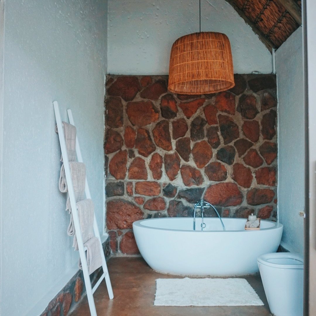 Nous avons ensuite découvert notre villa. Le lodge est composé de tentes de glamping et d’une villa avec deux chambres, idéale pour les familles. La décoration autour des pierres, du bois est sublime et chaleureuse. Chaque chambre dispose d’une salle de bain avec baignoire sur pieds et d’une douche extérieure. Et sur la grande terrasse, un jaccuzi vous attend !